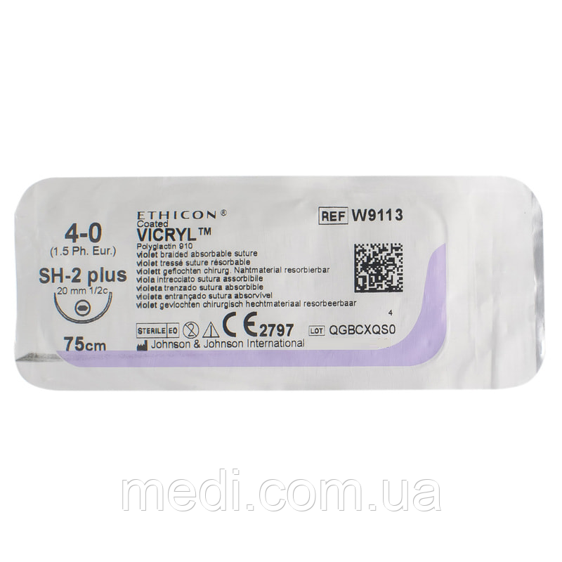 Вікрил 4-0 колюча модифікована Taper Point 20 мм, 1/2 кола, фіолетовий, 75см, Vicryl Ethicon W9113